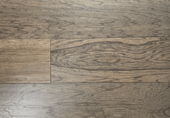 Premium engineered hickory flooring in Grey Stone finish